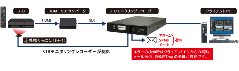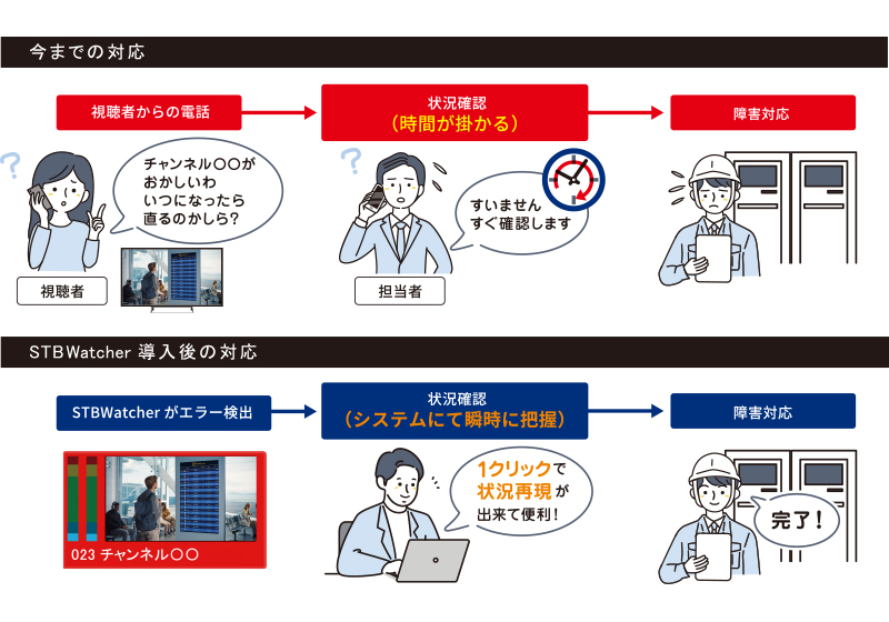 視聴者が実際に利用しているSTBを使用し、視聴者目線にて監視を行うことができます。