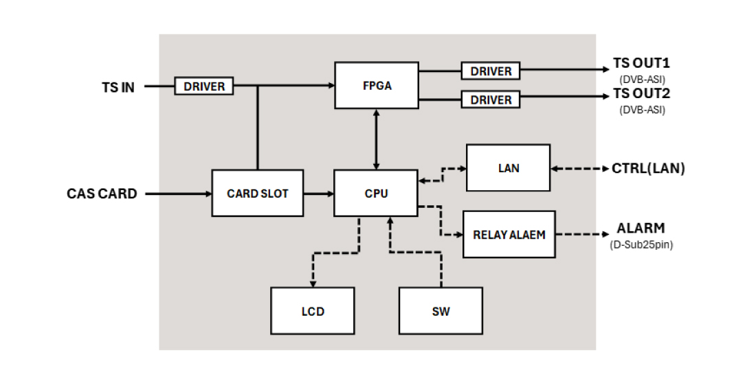 | 入出力 | 入力I/F | TS入力:DVB-ASI×1 ※合成TSまたは局間TS(単一TS) ※204バイトのTSパケットの入力に対応しています。 ※入力はパケットモード、バーストモードに対応しています。 |